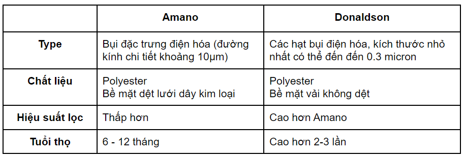 Nếu bạn đang sử dụng túi lọc bụi của Amano và muốn thay thế bằng túi lọc bụi của Donaldson, bạn cần chú ý đến kích thước và loại túi lọc bụi phù hợp với hệ thống của mình.