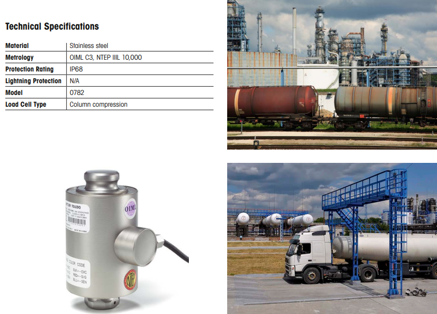 POWERCELL® 0782 của Mettler Toledo là dòng load cell analog tải trọng cao, được thiết kế để đáp ứng nhu cầu đo lường chính xác trong các ứng dụng cân bồn, silo, xe tải, và đường ray công nghiệp.